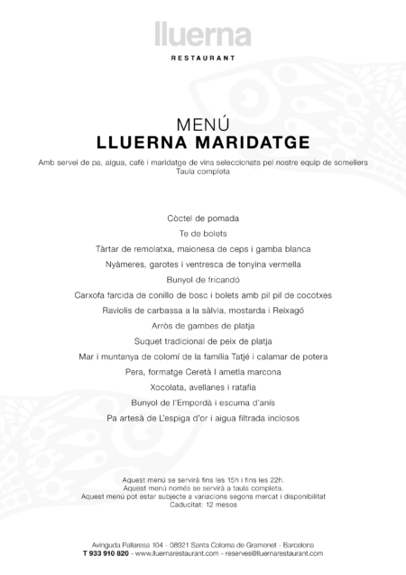Lluerna Pairing Menu
