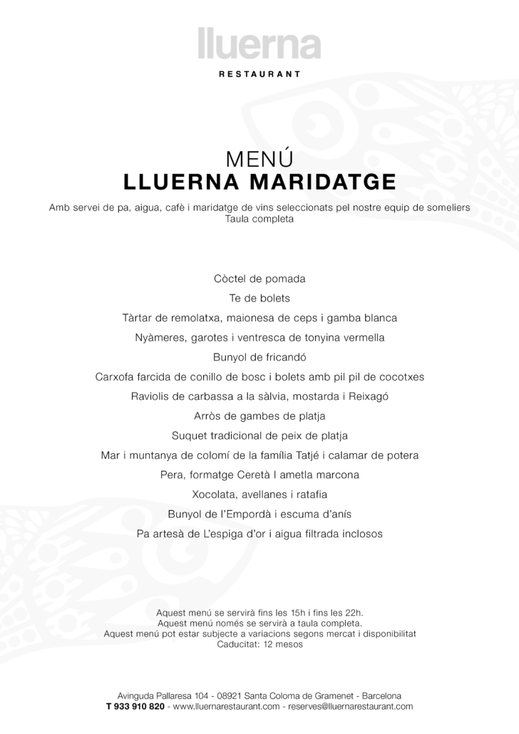 Lluerna Pairing Menu