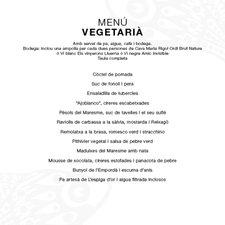 Aquest menú se servirà dimarts i dimecres migdia i vespre, dijous nit i divendres migdia.